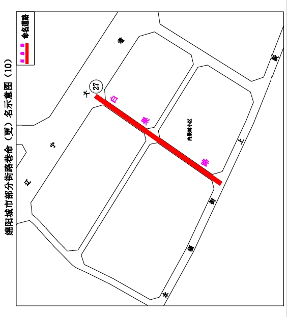 27.白果路:遼寧大道至永福街上段,南北走向,長約300米,寬約15米。道路位于白果樹小區(qū)西側(cè),擬命名“白果路”。(見示意圖10)