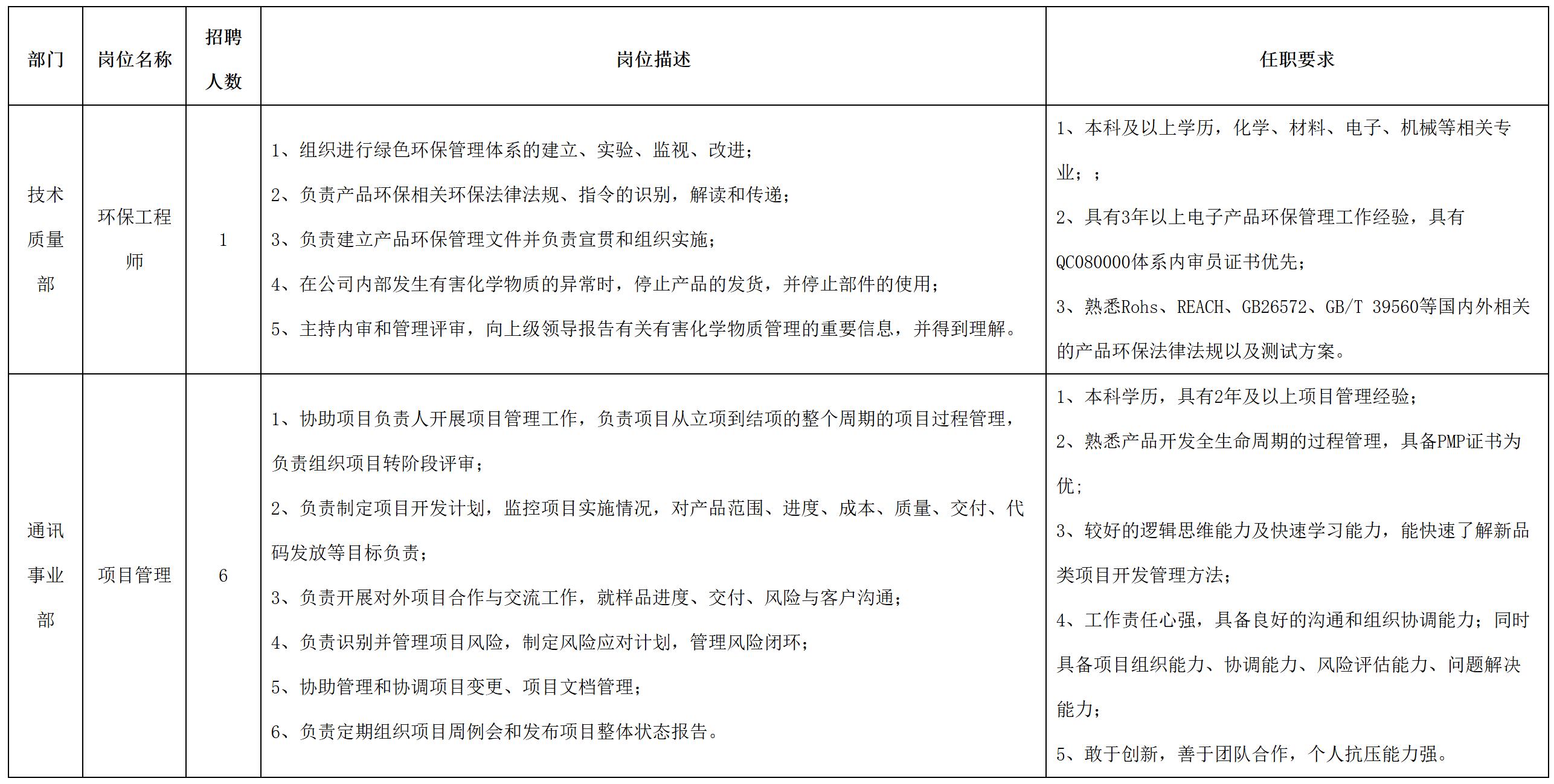 現(xiàn)因公司經(jīng)營(yíng)發(fā)展需要,現(xiàn)面向長(zhǎng)虹控股集團(tuán)內(nèi)、外部誠(chéng)聘環(huán)保工程師等崗位人員,具體崗位招聘信息公告如下: