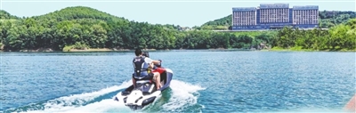 “抓緊了!要加速啦!”伴隨著教練的呼喊聲,皮卡丘造型的水上坐騎在小艇牽引下,在7平方公里的仙海湖面飛馳,浪花卷起拍在身上,引得游客陣陣歡呼。這里不僅是孩子們的童話樂園,更是成年人釋放壓力的激情賽場(chǎng)。香蕉船、小黃鴨等萌趣水上設(shè)備,巧妙融合了趣味性與刺激性;尾波沖浪、摩托艇、水上槳板等項(xiàng)目的引入,進(jìn)一步豐富了水上運(yùn)動(dòng)的多樣性。