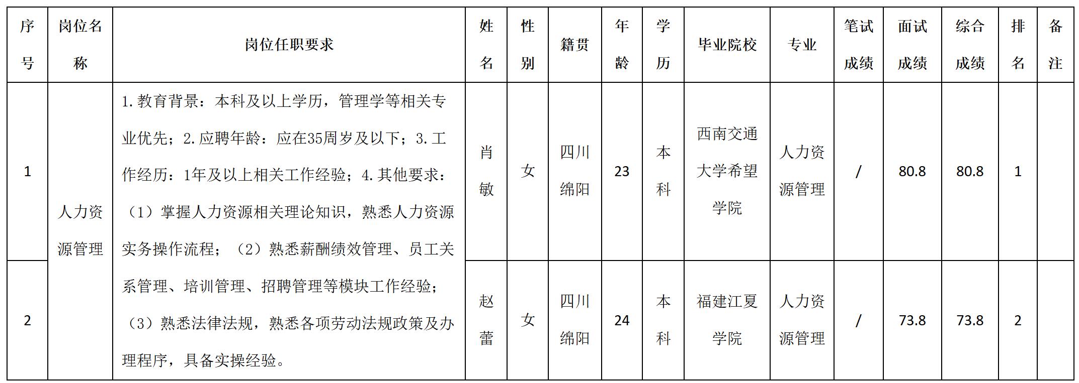 根據(jù)四川九州電子科技股份有限公司發(fā)布的招聘公告及招聘相關(guān)規(guī)定,經(jīng)筆試、面試等程序,現(xiàn)將筆試(面試)成績(jī)予以公示。