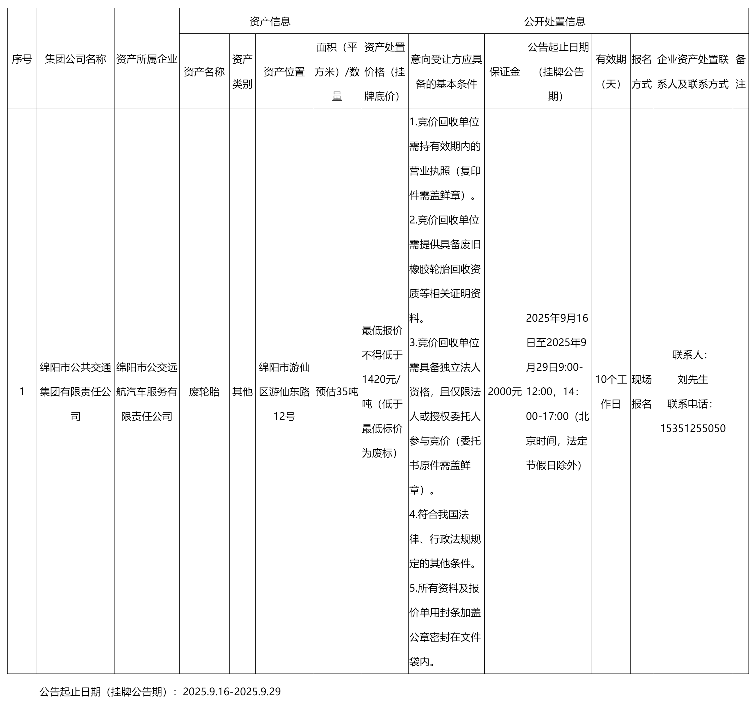 綿陽(yáng)市公共交通集團(tuán)有限公司資產(chǎn)處置公告