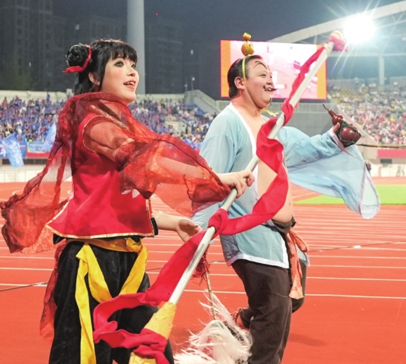 入場(chǎng)完畢后,綿陽(yáng)特色方隊(duì)再次呼喊“星耀九洲 盛世長(zhǎng)虹”口號(hào),并配合各自角色的標(biāo)志性動(dòng)作定格,那一刻,整個(gè)球場(chǎng)被觀眾的熱情點(diǎn)燃,現(xiàn)場(chǎng)氣氛達(dá)到高潮。