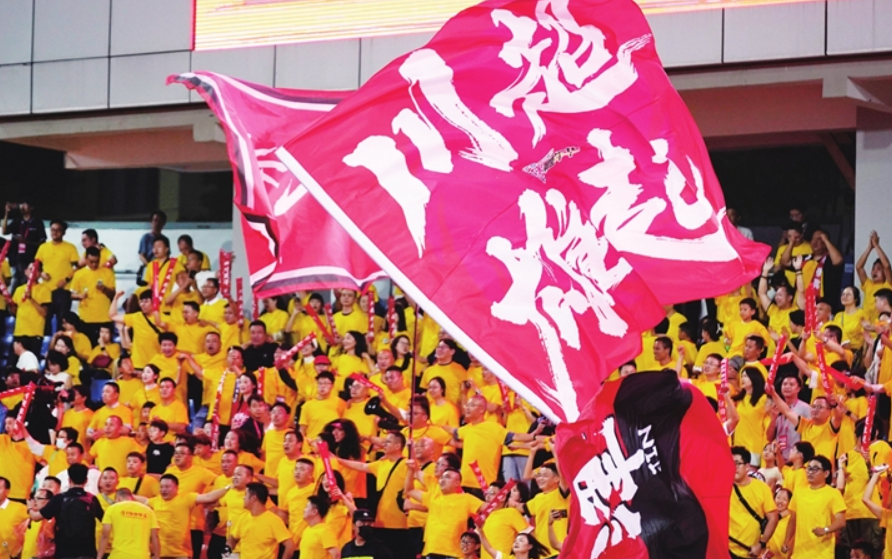 9月20日,球迷在場(chǎng)邊助威。 新華社記者 胥冰潔 攝