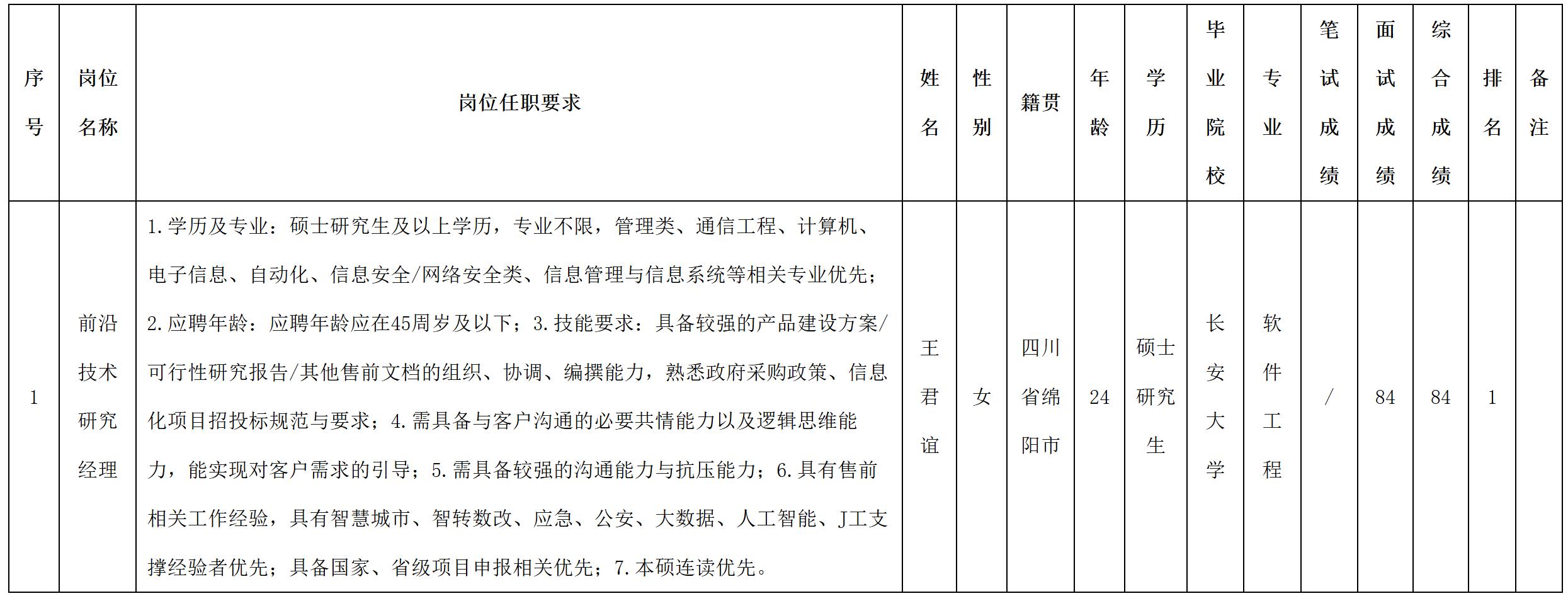 根據(jù)四川九洲投資控股集團(tuán)有限公司軟件與數(shù)據(jù)智能軍團(tuán)發(fā)布的招聘公告及招聘相關(guān)規(guī)定,經(jīng)筆試、面試等程序,現(xiàn)將筆試(面試)成績予以公示。