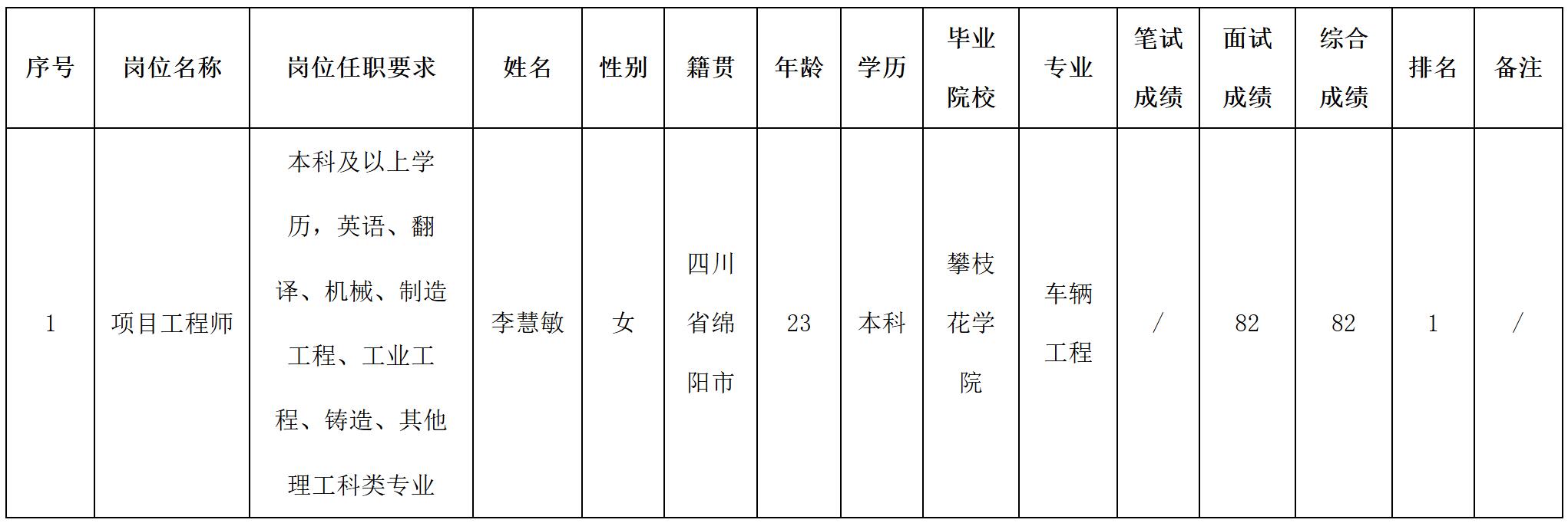 根據(jù)四川波鴻實(shí)業(yè)有限公司發(fā)布的招聘公告及招聘相關(guān)規(guī)定,經(jīng)面試等程序,現(xiàn)將面試成績(jī)予以公示。