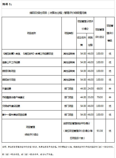 附件1:綿陽日?qǐng)?bào)社項(xiàng)目(決策與過程)管理評(píng)價(jià)明細(xì)情況表