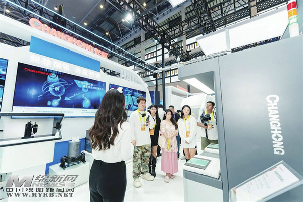 觀眾在長虹展區(qū)圍觀“科技創(chuàng)新 長虹智造”展品