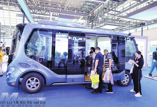 9月28日,在第十三屆中國(guó)(綿陽)科博會(huì)上,觀眾體驗(yàn)無人駕駛汽車。