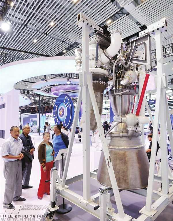9月28日,在第十三屆中國(guó)(綿陽)科博會(huì)上展出的液氧甲烷火箭發(fā)動(dòng)機(jī)。