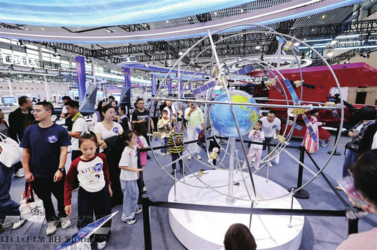 9月28日,在第十三屆中國(guó)(綿陽)科博會(huì)“南天門計(jì)劃”主題展區(qū),觀眾沉浸式體驗(yàn)科幻裝備的魅力。