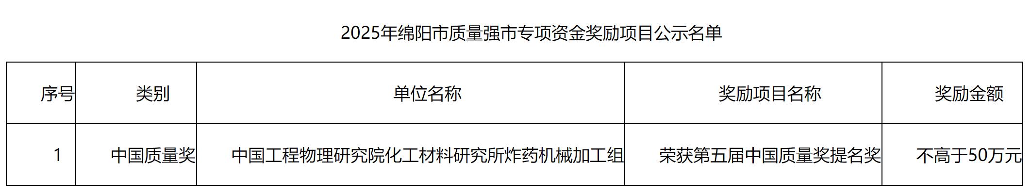 附件:2025年綿陽市質(zhì)量強市建設(shè)專項資金獎勵項目公示名單