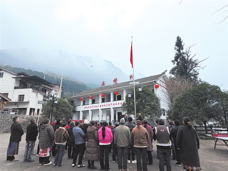 綿陽新聞網(wǎng)訊 1月1日清晨,北川羌族自治縣曲山鎮(zhèn)石椅村云霧繚繞,晨光熹微。身著節(jié)日盛裝的羌族村民齊聚村委會廣場,舉行莊嚴的升國旗儀式,以最質(zhì)樸、最隆重的方式迎接2026年的到來,共同表達對偉大祖國的美好祝福。