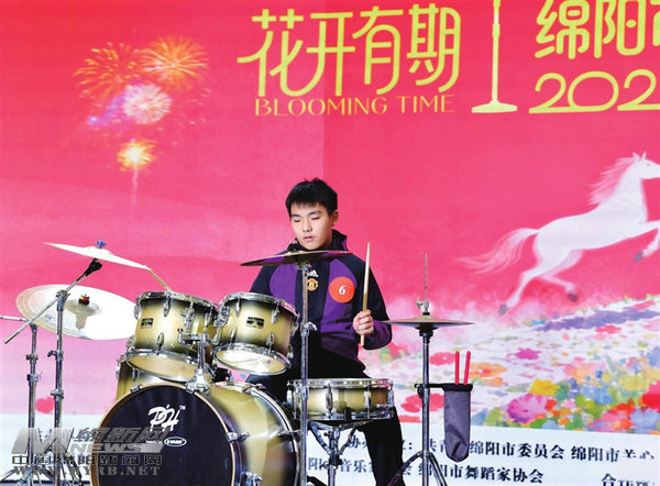 選拔賽上,參賽選手進(jìn)行架子鼓表演?! ∮浾?王勇 攝