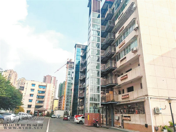 工行宿舍新安裝的戶外電梯。 劉玉明 攝