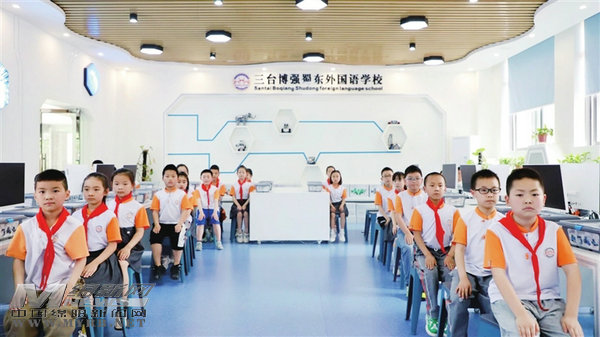 三臺博強(qiáng)蜀東外國語學(xué)校的學(xué)生在課堂上?! ∮浾?李錦輝 攝