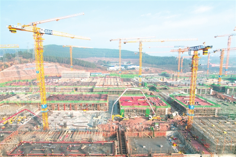 四川綿陽(yáng)工業(yè)園新型顯示產(chǎn)業(yè)園區(qū)基礎(chǔ)設(shè)施建設(shè)項(xiàng)目現(xiàn)場(chǎng)。記者 尹秦 攝