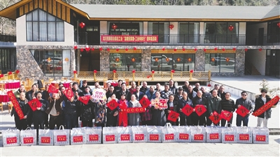 北川返鄉(xiāng)農(nóng)民工一起吃團(tuán)年宴、領(lǐng)“大禮包”?! ∮浾?唐云峰 攝