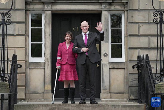 5月7日,在英國(guó)蘇格蘭愛(ài)丁堡,約翰·斯溫尼偕夫人抵達(dá)官邸。 英國(guó)蘇格蘭地方議會(huì)7日經(jīng)投票確認(rèn),蘇格蘭民族黨黨首約翰·斯溫尼出任蘇格蘭地方政府首席大臣。[