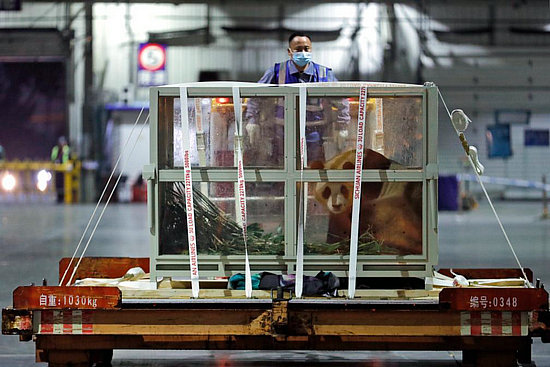 4月3日晚上,旅韓大熊貓“福寶”乘專機(jī)抵達(dá)成都雙流國際機(jī)場。在中國大熊貓保護(hù)研究中心、韓國三星愛寶樂園獸醫(yī)和飼養(yǎng)員的陪護(hù)下,前往隔離檢疫區(qū)。[