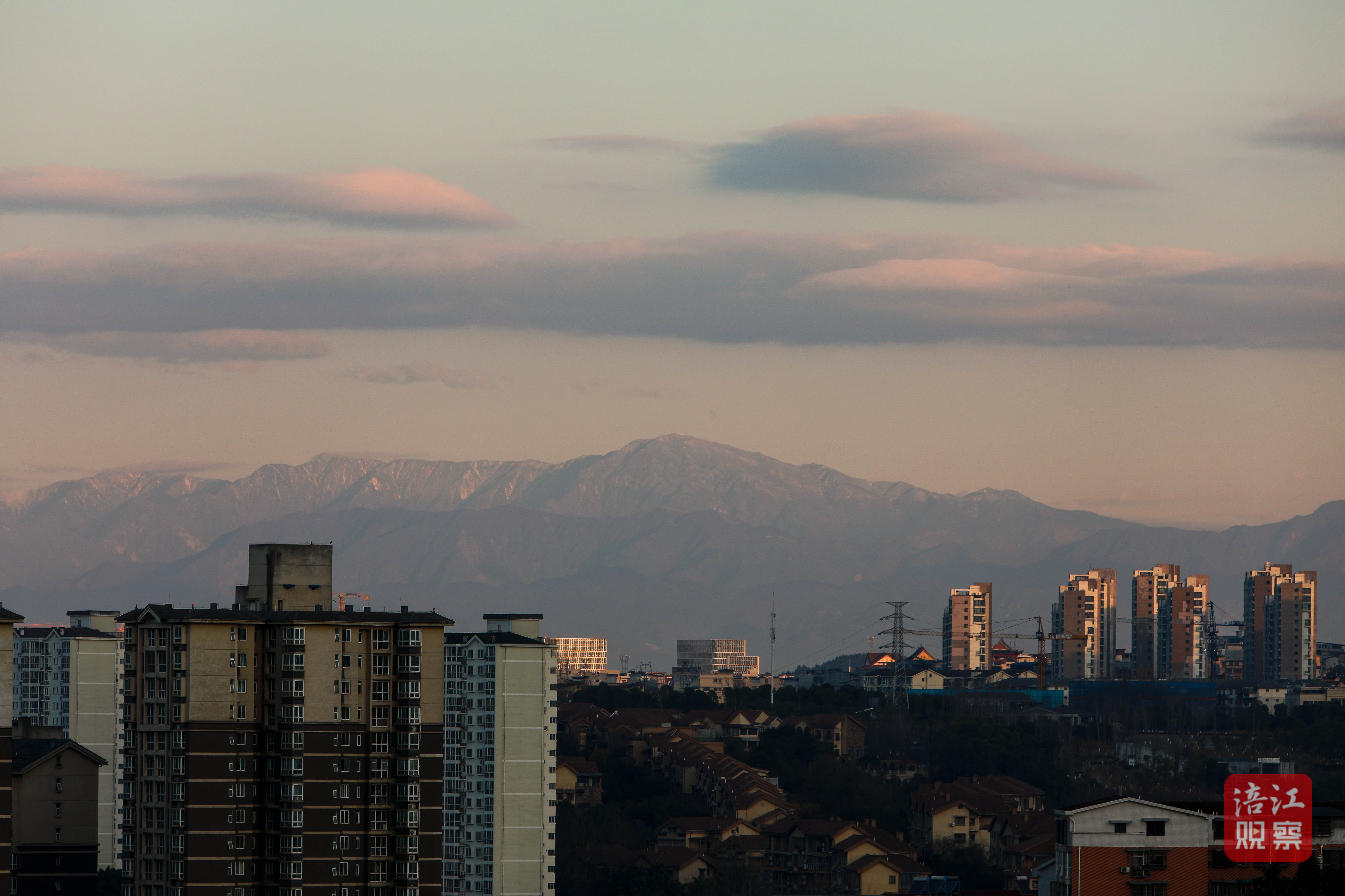 清晨,超高的能見度,讓綿陽人有機會一睹“窗含西嶺千秋雪”的壯麗風光。白雪皚皚的山巒,在陽光下閃閃發(fā)光,形成一道絕美的風景線。[