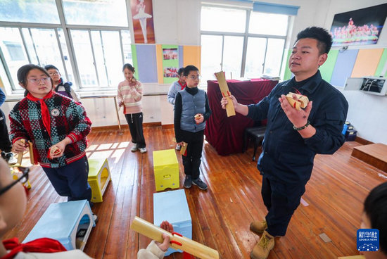 3月18日,東和鄉(xiāng)小學(xué)西路亂彈傳承特色班的學(xué)生在老師的指導(dǎo)下學(xué)習(xí)西路亂彈竹板課程。 浙江省諸暨市東和鄉(xiāng)小學(xué)是一所鄉(xiāng)村小學(xué)。從2024年9月開始,該校開設(shè)西路亂彈傳承特色班,由諸暨市文化特派員和十里坪村西路亂彈藝術(shù)團(tuán)成員定期來學(xué)校為學(xué)生們授課,助力地方戲曲傳承。諸..[