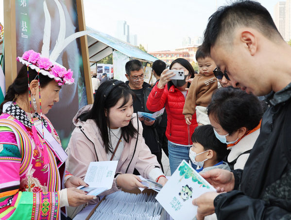 10月28日,作為2024綿陽市“文化三推”河北行系列活動(dòng)之一,“來綿陽領(lǐng)走1只‘大熊貓’”活動(dòng)在石家莊文化廣場(chǎng)(河北博物館前)舉行。河北市民可在現(xiàn)場(chǎng)領(lǐng)取明信片到綿陽旅游打卡,就能領(lǐng)走1只“大熊貓”。[