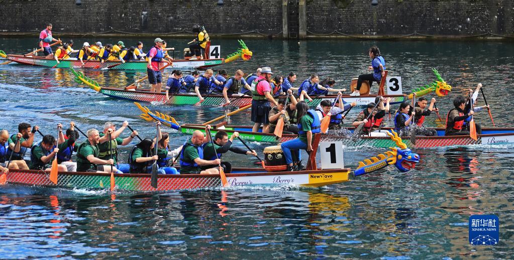 當(dāng)日,“2022全英中華端午龍舟會(huì)”在英國索爾福德市的古運(yùn)河上舉行,來自英國各地的36支龍舟隊(duì)參加角逐。除了龍舟比賽,活動(dòng)現(xiàn)場還組織了功夫表演、舞龍舞獅、傳統(tǒng)舞蹈、書法展示等具有中國特色的節(jié)目,多方位展示中華傳統(tǒng)文化。 [