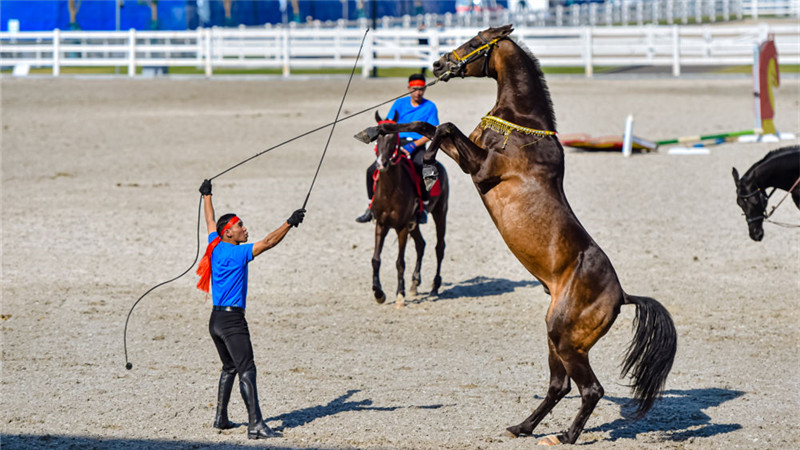 六匹健碩駿馬有的前蹄抬起穩(wěn)步直立前行,有的飛馳奔躍騰空如履平地,觀眾席上驚嘆聲此起彼伏……這是記者日前在第十四屆全運會馬術比賽場地——陜西西咸新區(qū)秦漢國際馬術中心看到的熱鬧場景。 [