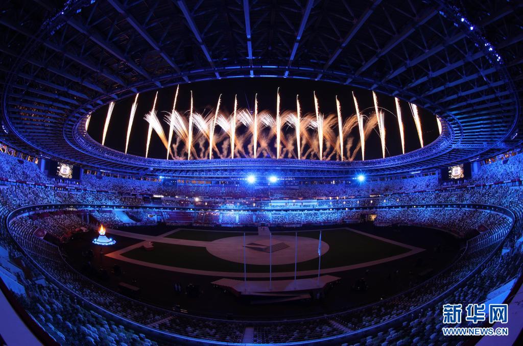 天塔點(diǎn)亮夜空 致敬奧運(yùn)健兒