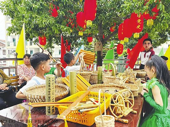 近日,梓潼縣開展非遺進校園活動,讓青少年近距離領(lǐng)略非遺的魅力。 在梓潼縣黎雅小學,“竹編”作品展示活動吸引了眾多學生觀看?!敖裉煳揖幙椓艘粋€簡易的小竹簍,特別有成就感。我非常喜愛竹編這門藝術(shù),它給我?guī)砹丝鞓?。”黎雅小學學生石浩宇說。 [