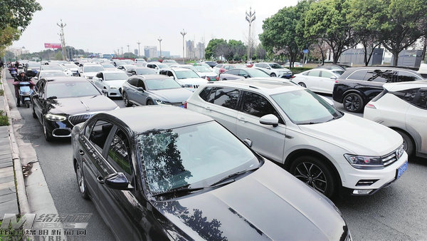 “周一到周五,每天放學(xué)都得堵?!薄拔一耸畮追昼姡徘斑M(jìn)了500米。”“平峰時(shí)段一兩分鐘的路程,高峰時(shí)要花二十分鐘。” [