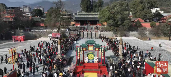 “開山門啰!”1月30日,大年初二,隨著身著明代官員服飾的演員中氣十足的一聲吶喊,平武縣報恩寺“新春報璽”—“開山門·土司報恩”迎賓儀式正式開始。[