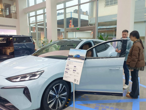 2月2日,大年初五,位于綿陽經(jīng)開區(qū)同立汽車城的綿陽騰勢汽車銷售有限公司展廳內(nèi),前來看車、試車的市民絡繹不絕。[