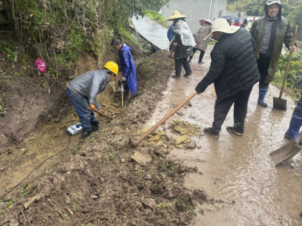 2月6日,大年初九,尚未散去的年味蕩漾在綿陽市三臺縣建中鎮(zhèn)大堰村七組。細雨蒙蒙中,戴著斗笠、身穿雨衣的村民拿著鋤頭、鐵鏟等工具,在村道上鏟除雜草、擴寬路基、平整路面、淘整山洪溝……隆隆作響的電錘聲與說說笑笑的勞作聲交織在一起,讓這個被當?shù)乩相l(xiāng)稱為磚房子的小山..[