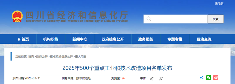 據(jù)四川省經(jīng)濟和信息化廳網(wǎng)站消息,近日,經(jīng)濟和信息化廳發(fā)布經(jīng)信系統(tǒng)重點調(diào)度的2025年500個重點工業(yè)和技術改造項目名單,項目總投資17048.9億元,2025年計劃投資3291.6億元。[