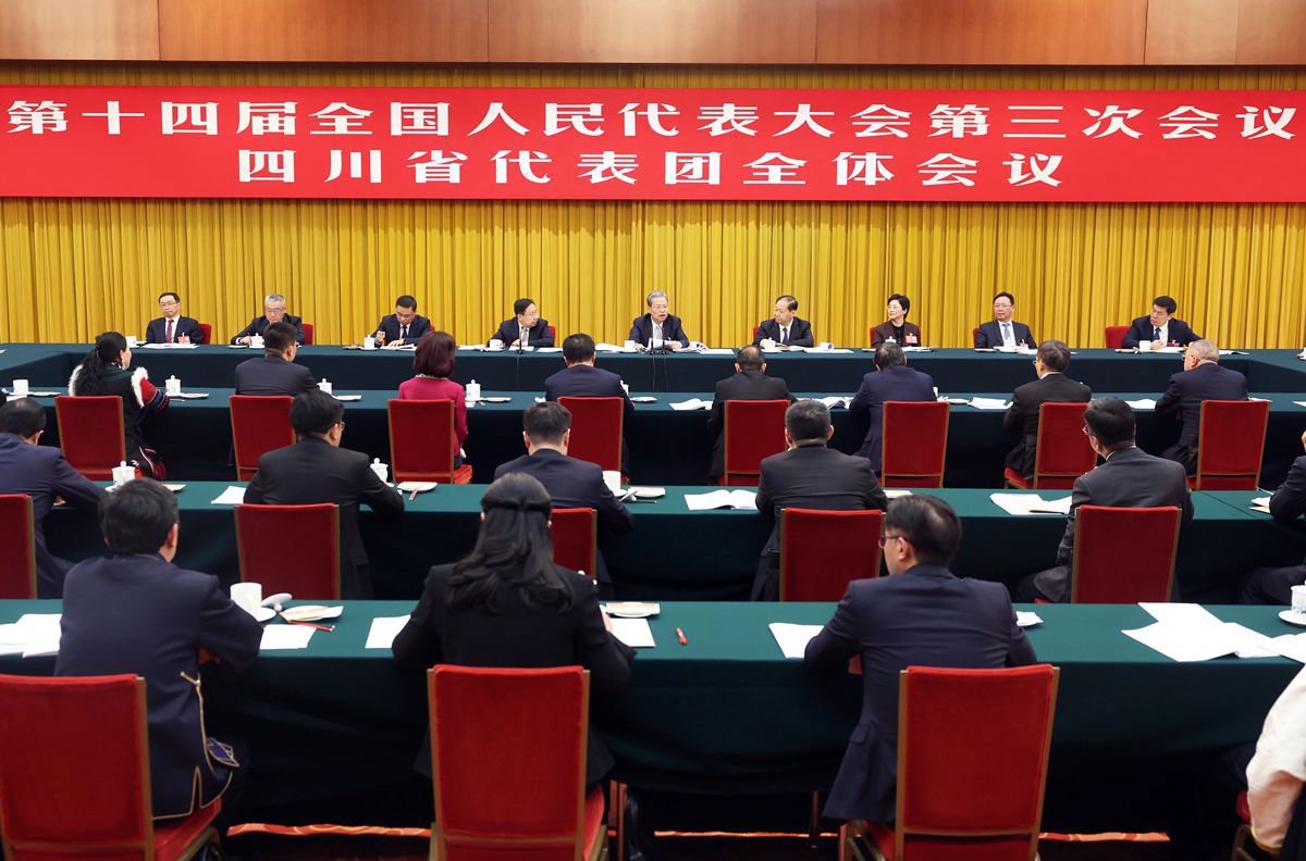 四川代表團舉行全體會議 集中審議政府工作報告 趙樂際參加審議并發(fā)言 彭清華王曉暉施小琳等參加審議 胡靜林等到團聽取意見