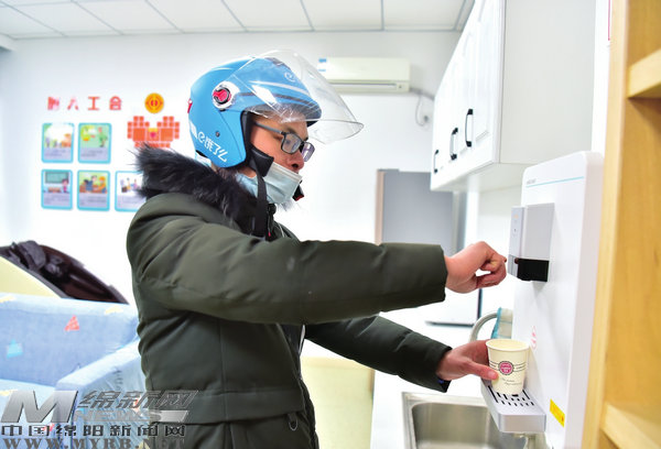 外賣小哥在休憩站喝水 綿陽新聞網(wǎng)訊 “安逸得很,有沙發(fā)、微波爐、電冰箱,一應(yīng)俱全,非常方便。”1月7日中午,負(fù)責(zé)東津路路面清掃工作的環(huán)衛(wèi)工人林昌倫走進“城市勞動者休憩驛站”,打開壁柜,拿出紙杯,接了一杯熱水,坐在沙.. [