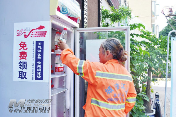 “愛心冰箱”再現(xiàn)綿陽街頭 戶外工作者免費(fèi)取飲