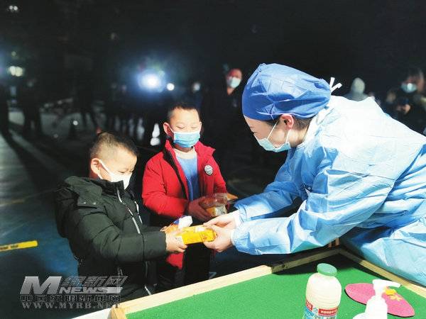 2月26日,綿陽(yáng)市高新區(qū)對(duì)重點(diǎn)區(qū)域進(jìn)行核酸檢測(cè)進(jìn)入第三天。21時(shí),在高新區(qū)608小區(qū)廣場(chǎng)核酸采樣點(diǎn),一位6歲的哥哥牽著5歲弟弟的手,將自己心愛(ài)的牛奶和手寫(xiě)感謝信,遞給了采樣點(diǎn)的“大白們”——綿陽(yáng)市中心醫(yī)院核酸采樣隊(duì)。 [
