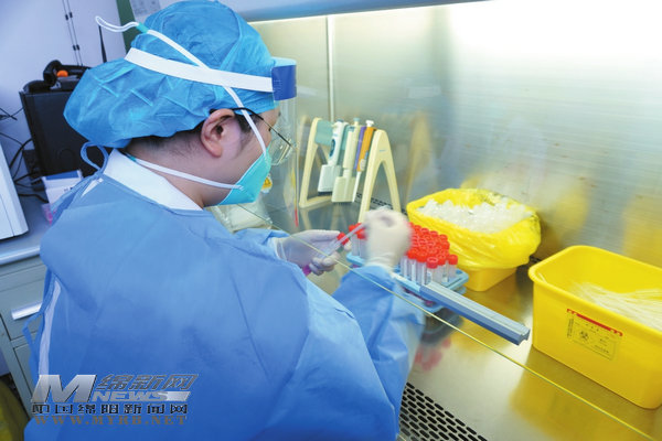 2月26日下午,綿陽(yáng)日?qǐng)?bào)社“綿小觀”記者探訪了綿陽(yáng)四〇四醫(yī)院檢驗(yàn)科新冠核酸檢測(cè)實(shí)驗(yàn)室。 [