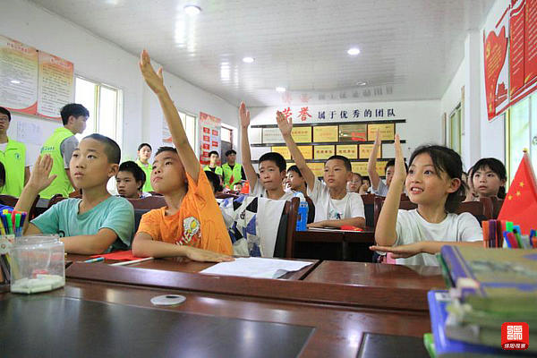 “大家快坐好,我們馬上開始上課了?!痹谌_縣潼川鎮(zhèn)解放村村委會的“教室”里,大二學生羅馨宇正在組織班上50多名不同年齡的孩子做好上課準備。 [