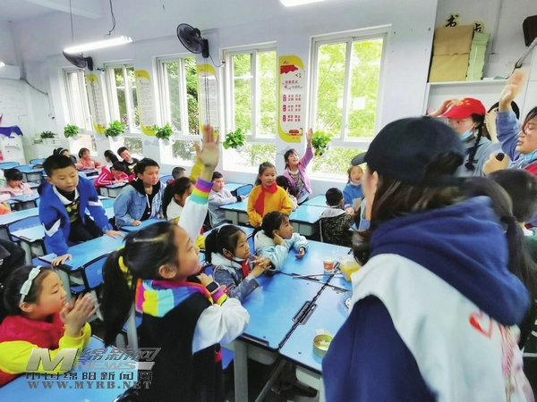 西南財經(jīng)大學(xué)天府學(xué)院雷鋒站的大學(xué)生志愿者在游仙區(qū)置信小學(xué)開展了“走進(jìn)生活,走進(jìn)科學(xué)”主題志愿服務(wù)活動,為小朋友們講解科學(xué)知識、開展科學(xué)小游戲。 [