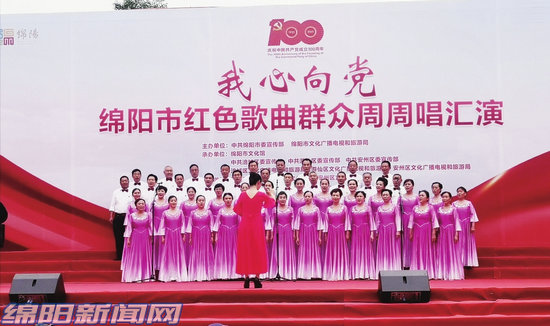 作為綿陽市慶祝中國共產(chǎn)黨成立100周年群眾文化系列活動的重要組成部分,“我心向黨”綿陽市紅色歌曲群眾周周唱首場匯演,6月30日在綿陽城區(qū)五一廣場舉行,來自安州區(qū)、游仙區(qū)的4支團(tuán)隊12個節(jié)目,與市民一起用歌聲祝福黨的百年華誕。 [